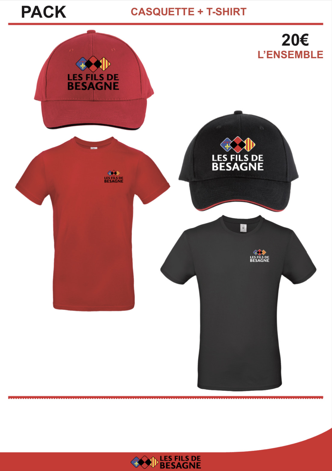 Offre pack 1 T-Shirt rouge ou noir + une Casquette rouge ou noire, 20€ au lieu de 25€